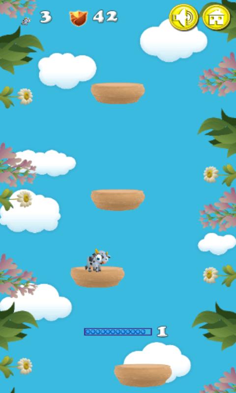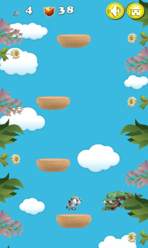 Эта корова жует на траве на ферме. Корова продолжает есть траву на земле. Когда трава заканчивается там, ей нужно на верхнем этаже, чтобы иметь больше. Нажмите на экран, чтобы отправить ее на верхний этаж. У нее прыжок и движется на верхний этаж. Верхние этажи движутся, поэтому следите за положением там, прежде чем постукиваться. Иначе корова упадет в яму.